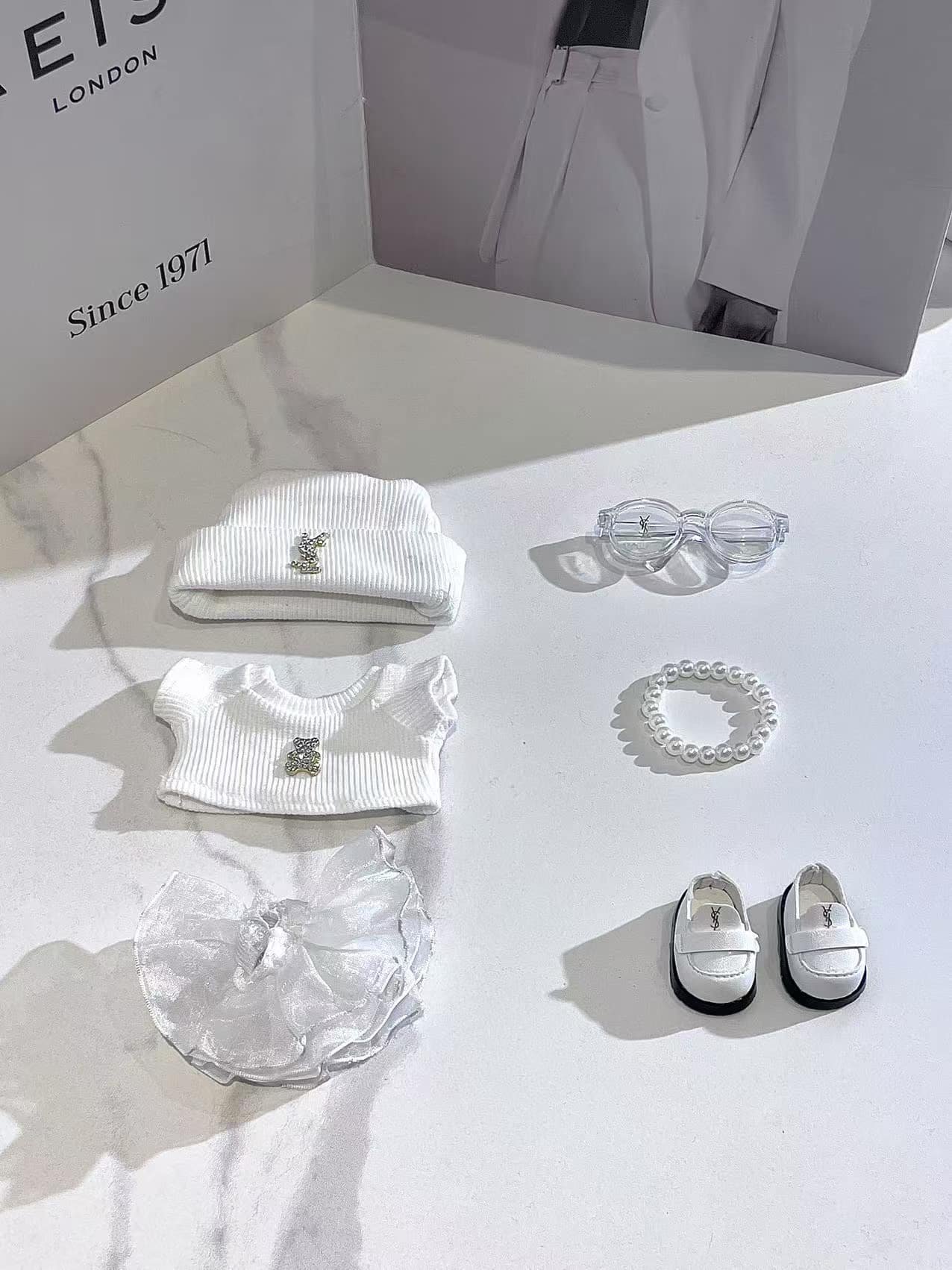 💫The suit includes 1 white top + dress + knit cap + shoes + glasses + necklace